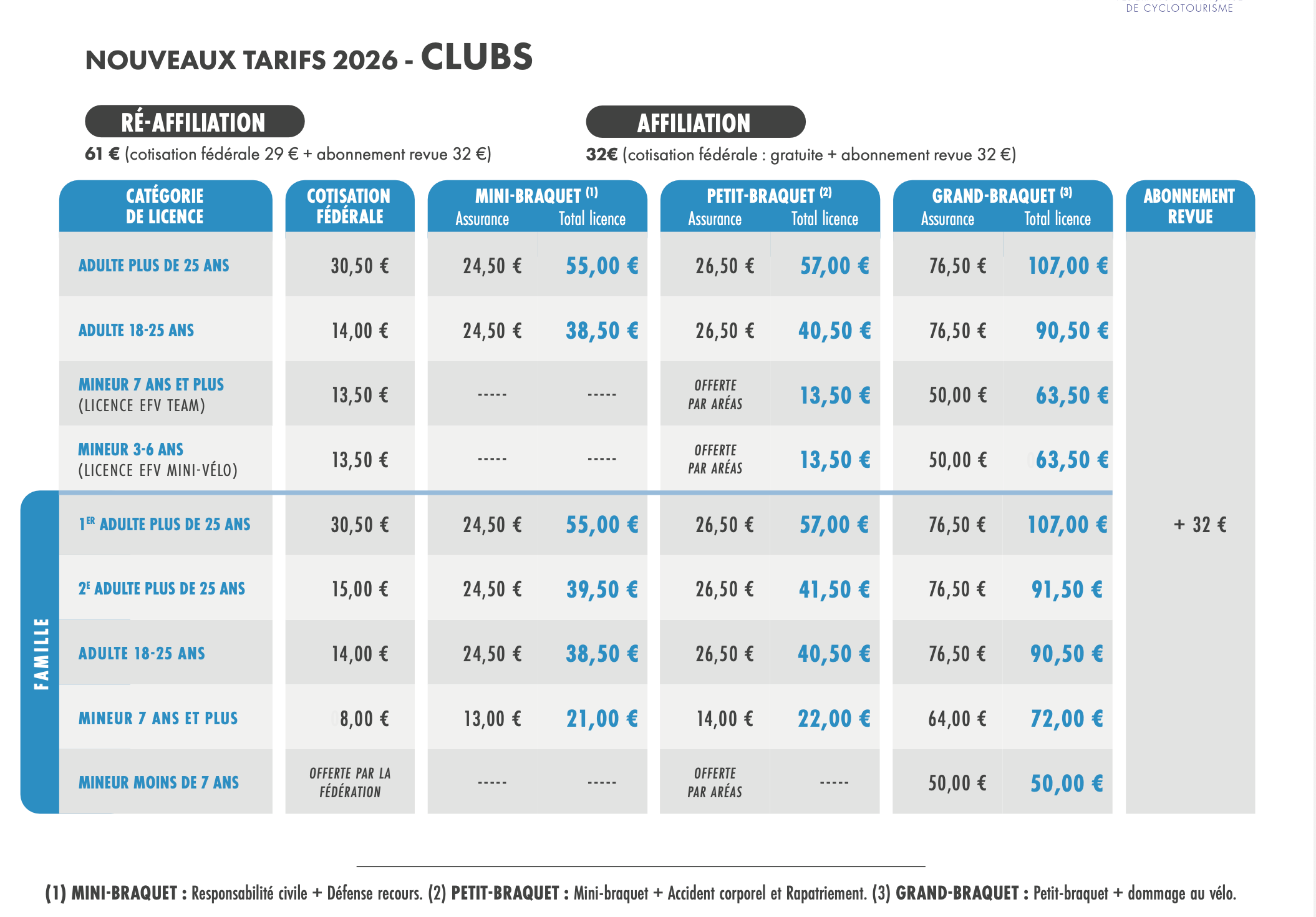 Tarif licence 2026 :